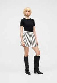 ONLEVA STRIPE SKATER SKIRT - Μίνι φούστα - cloud dancer/black