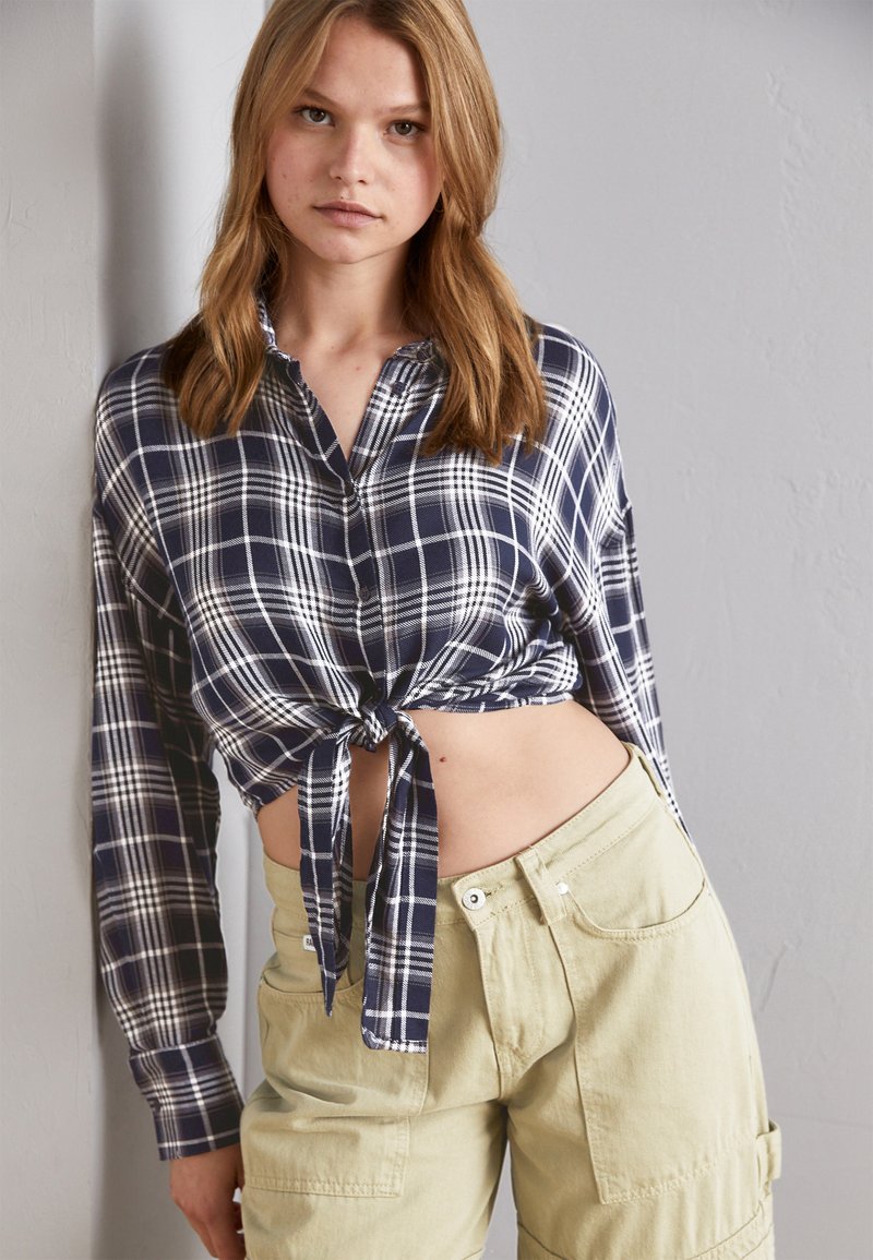 ONLRILEY KNOT CHECK - Πουκαμίσα με κουμπιά - dress blues/grey/ecru