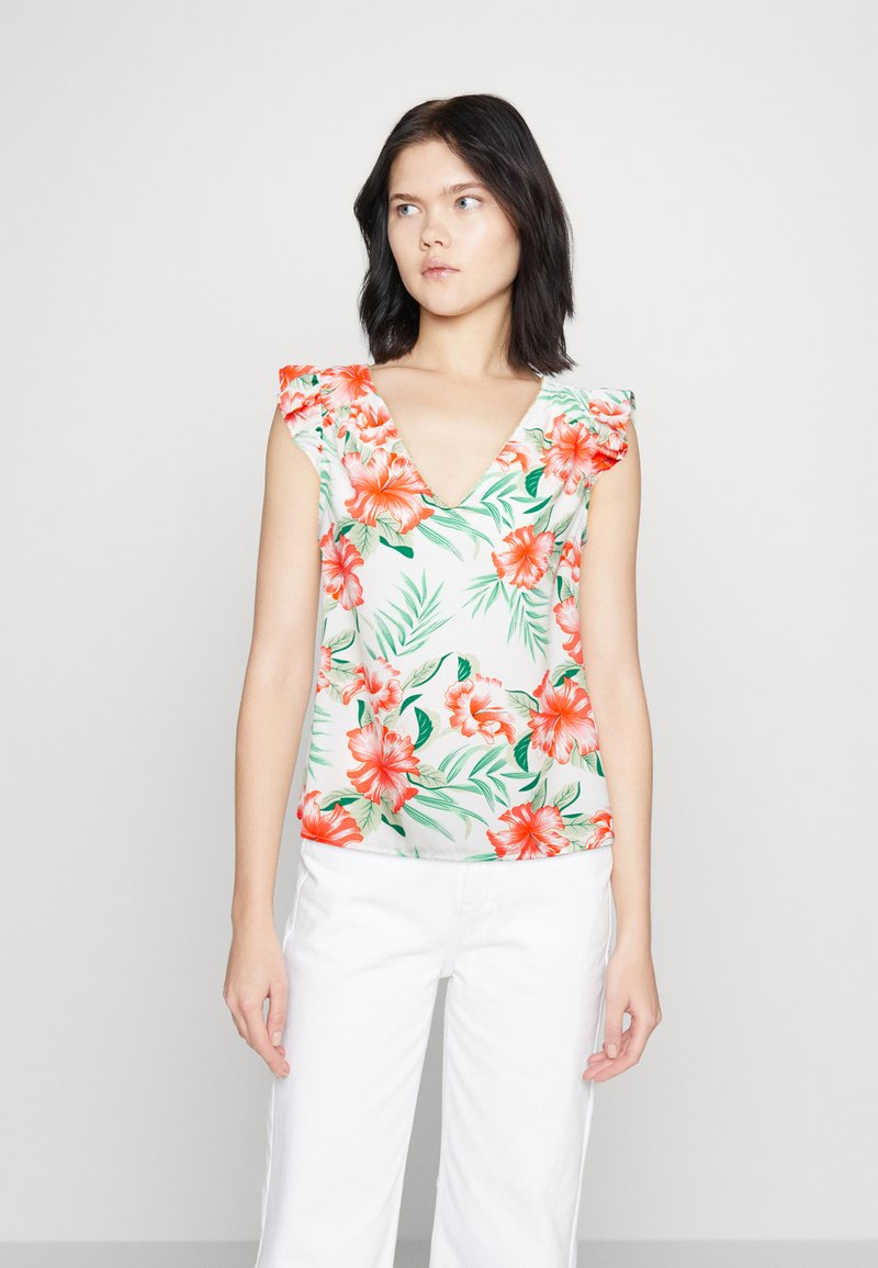 ONLSYLVIE LIFE FRILL TOP - Μπλούζα - cloud dancer jungle