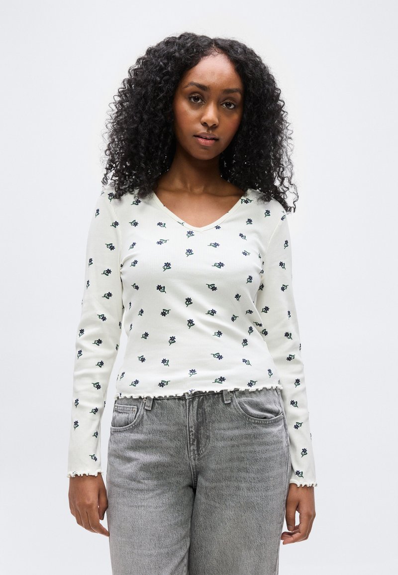 ONLINA V NECK - Μπλούζα με μακριά μανίκια - cloud dancer/naval academy