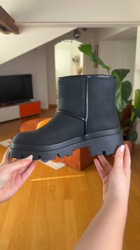 Μαύρα μποτάκια αστραγάλου με χοντρή σόλα, ματ λεία υφή, στρογγυλεμένη μύτη και ραμμένες λεπτομέρειες κατά μήκος του πάνω μέρους. Παχιά, υφή εξωτερική σόλα.
