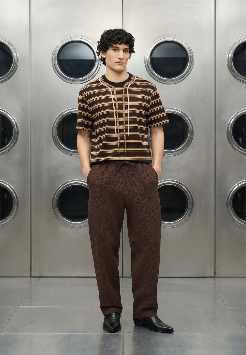 EMBROIDERED LINE STITCH TROUSER - Παντελόνι - brown