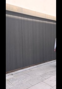 Γυναίκα με μπεζ καμπαρντίνα και μαύρα γυαλιά ηλίου περπατά σε πεζοδρόμιο πόλης δίπλα από διακοσμητικά πέτρινα κτίρια με μεγάλη μαύρη πόρτα.
