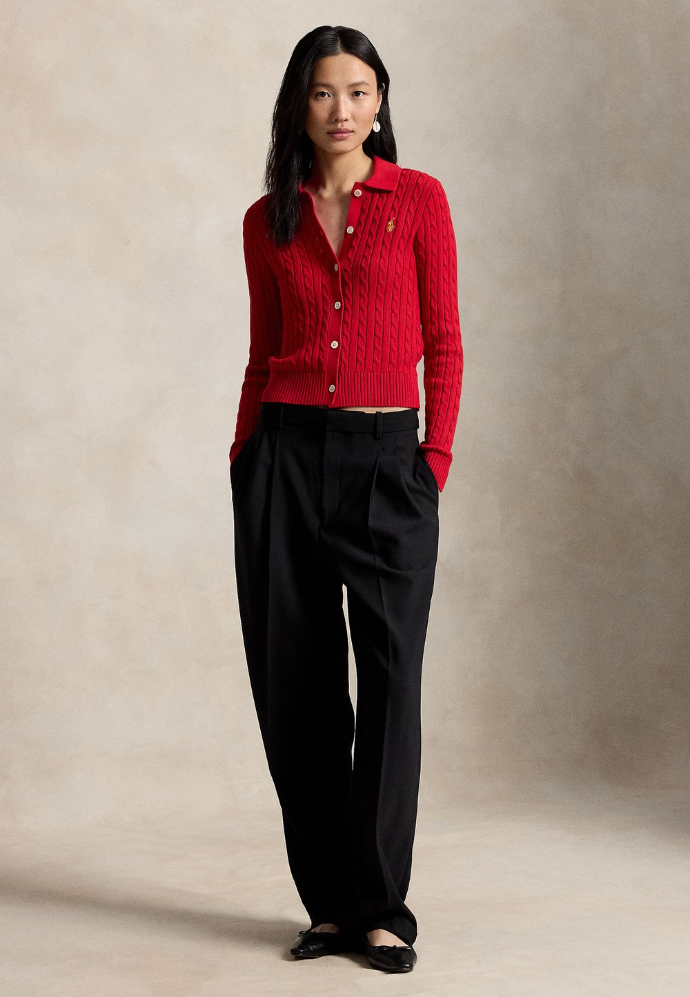 Polo Ralph LaurenCABLE-KNIT COTTON CARDIGAN - Ζακέτα - red