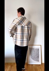 • Άνδρας που κοιτάζει προς τα αριστερά, φοράει μπεζ, λευκό και καφέ καρό σακάκι πάνω από ένα ανοιχτόχρωμο πουκάμισο, με τα χέρια βυθισμένα στις τσέπες του σακακιού, μπροστά από ένα απλό φόντο.