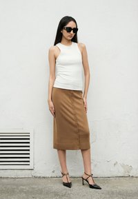 BUTTON DETAIL SKIRT - Pencil φούστα - camel
