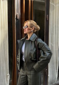 LAILA - Δερμάτινο μπουφάν - dark eucalyptus