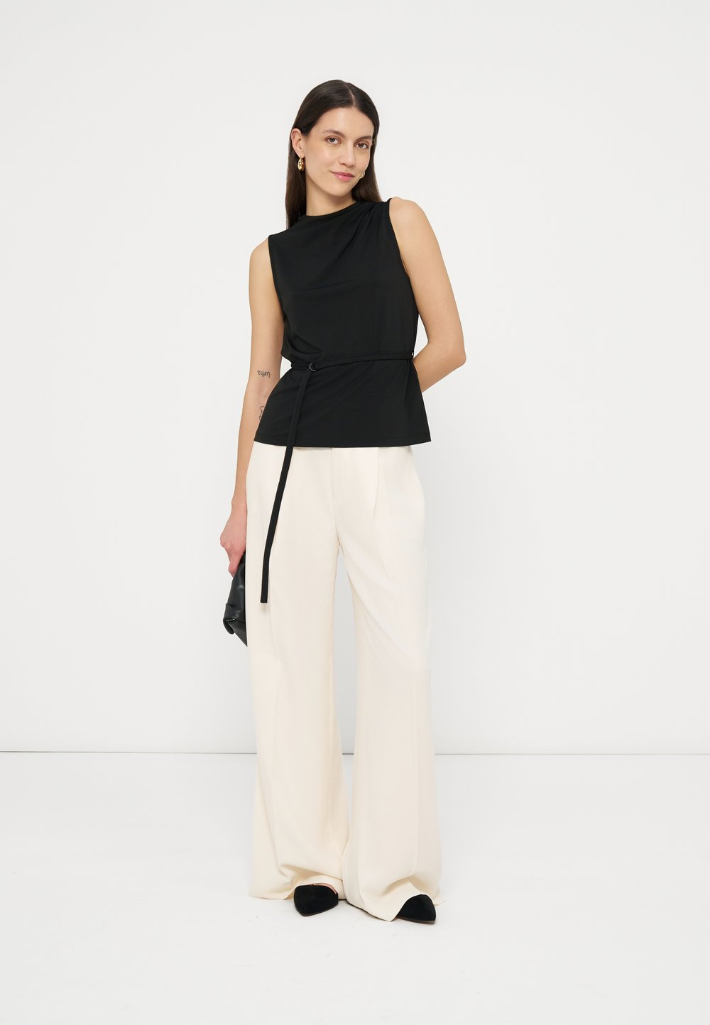 DOUBLE-FACED GEORGETTE WIDE-LEG PANT - Παντελόνι - mascarpone cream