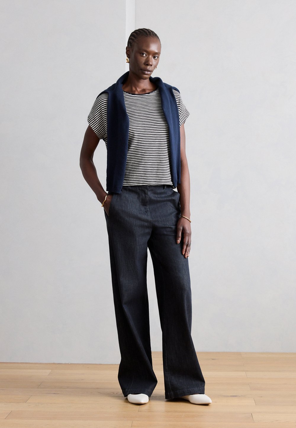 Marc O'PoloPANTS WIDE LEG TAILORED STYLE FRENCH POCKETS WELT POCKET - Wide leg - rinse wash denim
