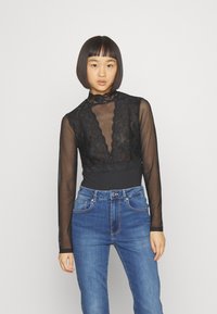 PCSICCA HIGH NECK BODYSTOCKING - Μπλούζα με μακριά μανίκια - black