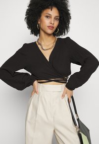 PCSTINA WRAP CROP TOP - Μπλούζα - black