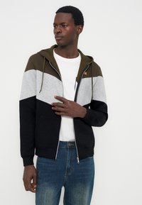 Φούτερ με φερμουάρ - dark green/grey melange/black