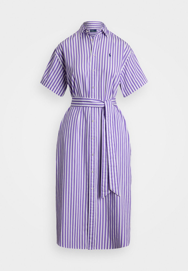 BELTED STRIPED COTTON SHIRTDRESS - Φόρεμα πουκάμισο - purple/white