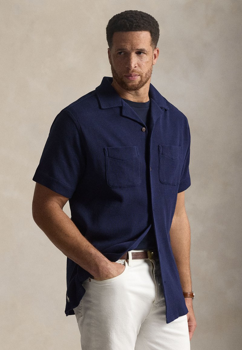 WAFFLE-KNIT COTTON-LINEN CAMP SHIRT - Πουκάμισο - newport navy