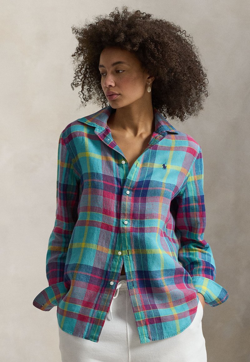 CLASSIC FIT PLAID LINEN SHIRT - Πουκαμίσα με κουμπιά - aqua hot pink multi