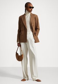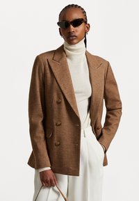 DOUBLE BREASTED HERRINGBONE BLAZER - Σακάκι - tan
