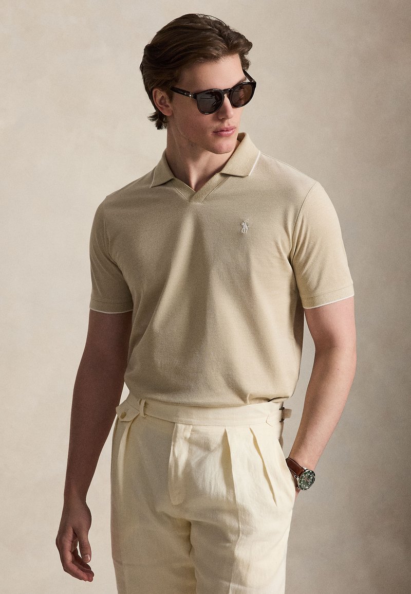 JACQUARD MESH POLO SHIRT - Πόλο - coastal beige/white