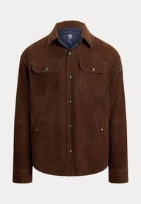 REVERSIBLE SUEDE-TAFFETA SHIRT JACKET - Δερμάτινο μπουφάν - cooper brown/collection navy