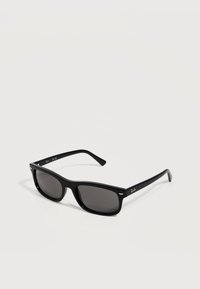 Ορθογώνια γυαλιά ηλίου με κορνίζα από χελωνόκρατο, φακούς σκούρου πράσινου χρώματος και λογότυπο Ray-Ban στους βραχίονες, τοποθετημένα σε λευκή επιφάνεια.