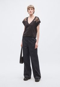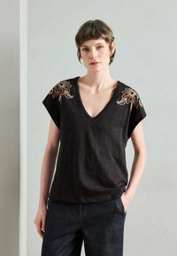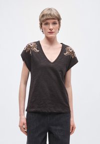 EMBROIDERED V NECK - Μπλουζάκι με στάμπα - meteorite