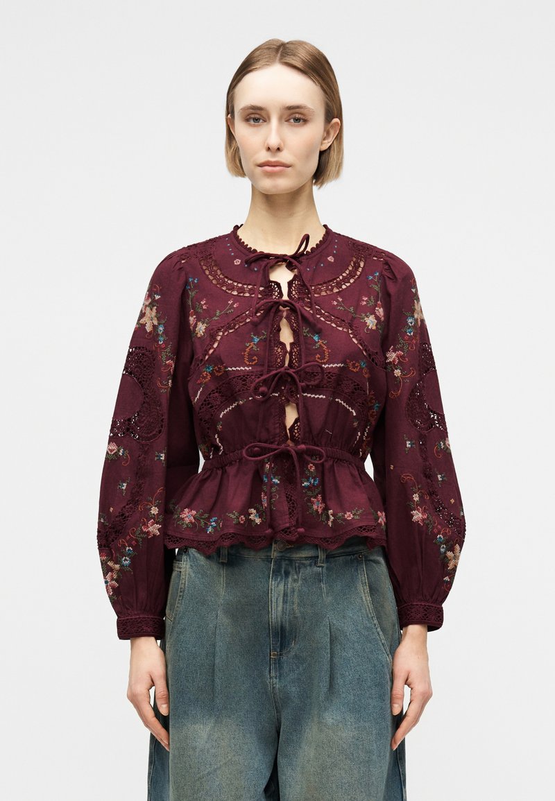 EDWINA EMBROIDERY - Μπλούζα - burgundy