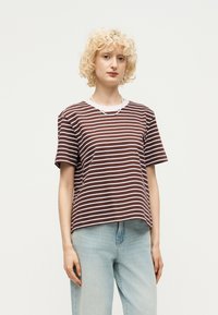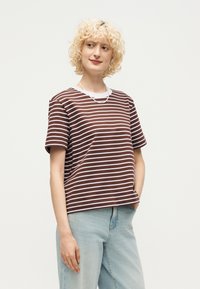 SLWESSENTIAL STRIPED BOXY TEE - Μπλουζάκι με στάμπα - chestnut/bright white