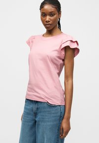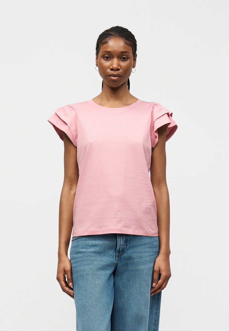 SLFCAMILA RUFFLE TEE - Βασικό μπλουζάκι - bleached mauve