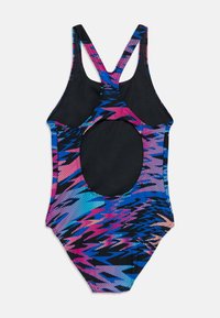 Ολόσωμο μαγιό με πολύχρωμο αφηρημένο σχέδιο σε αποχρώσεις ροζ, μπλε και μαύρου, σχεδίαση με racerback και υλικό από πολυεστέρα.