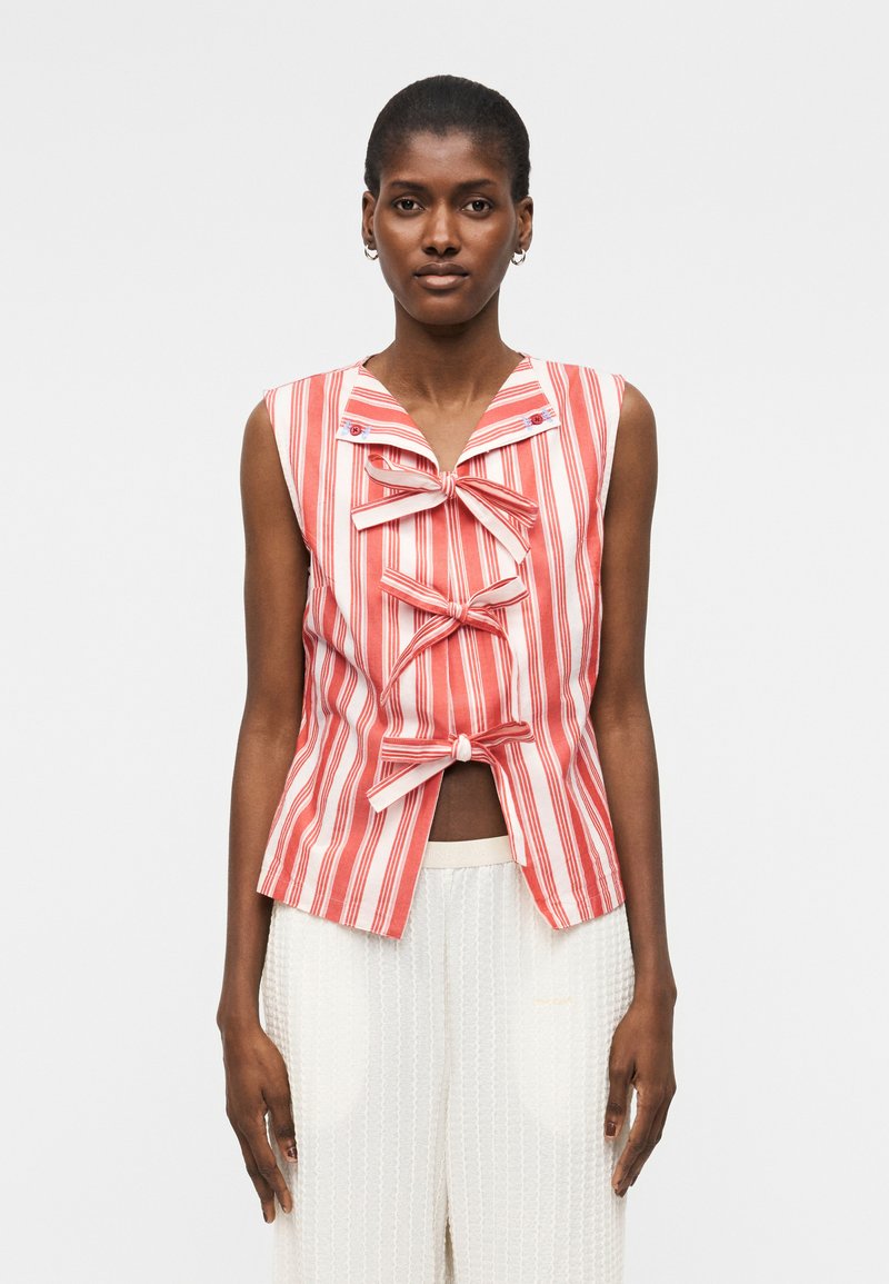STRIPED EMBROIDERED TIE FRONT VEST - Μπλούζα - red/off-white
