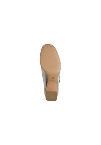 Ασημένια μεταλλική γόβα Mary Jane με μεσαίο τακούνι block και ένα λουράκι πάνω από τον κουντεπιέ.