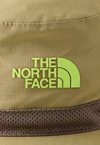 Μπεζ καπέλο τύπου bucket με καφέ δίχτυ και πράσινο λαχανί λογότυπο The North Face στο μπροστινό μέρος, εμφανιζόμενο σε λευκό φόντο.