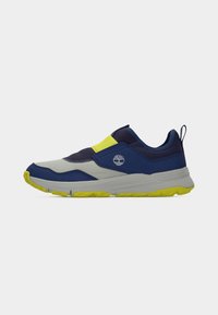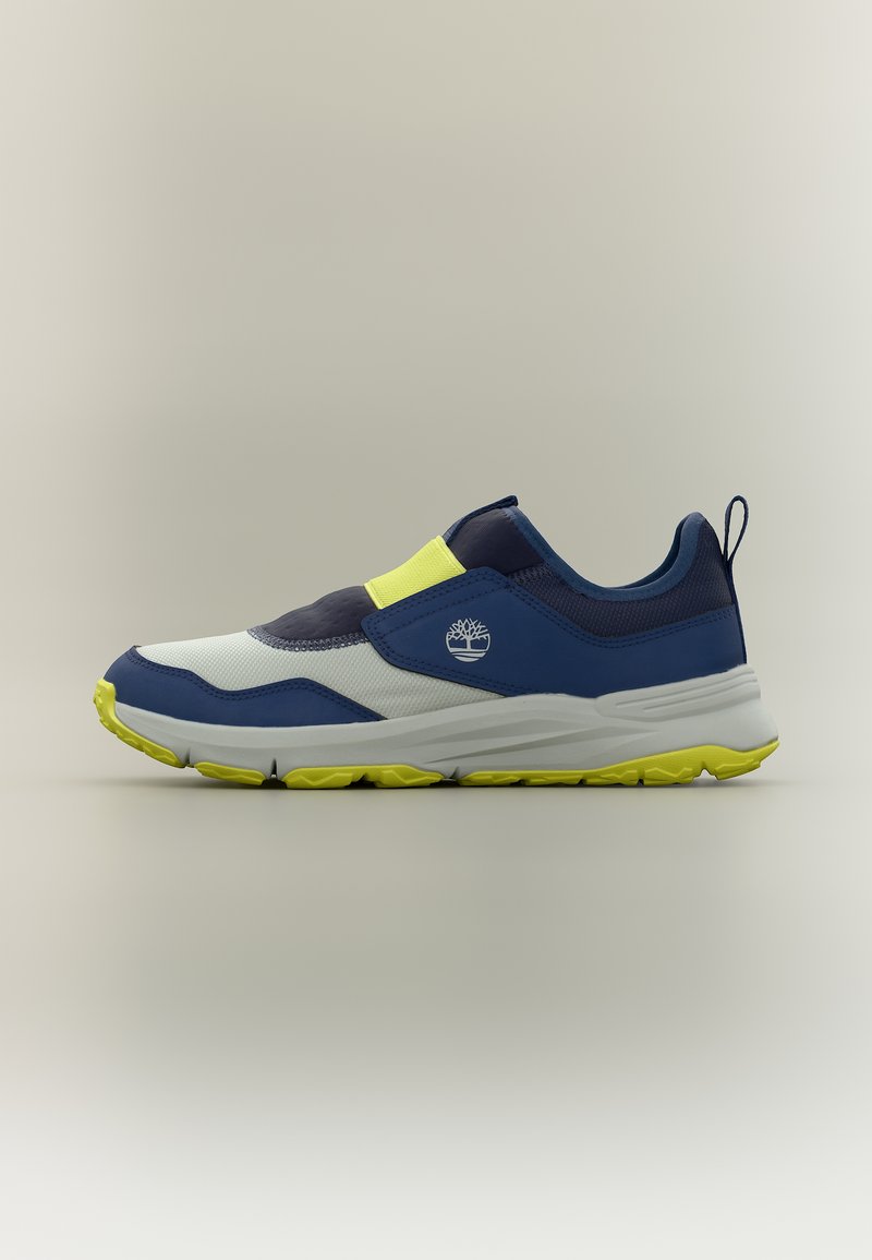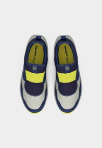 Ναυτικό μπλε, λευκό και νέον κίτρινο αθλητικό παπούτσι χωρίς κορδόνια με ελαστικό λουράκι μπροστά και λαστιχένια σόλα, με λογότυπο δέντρου στο πλάι.