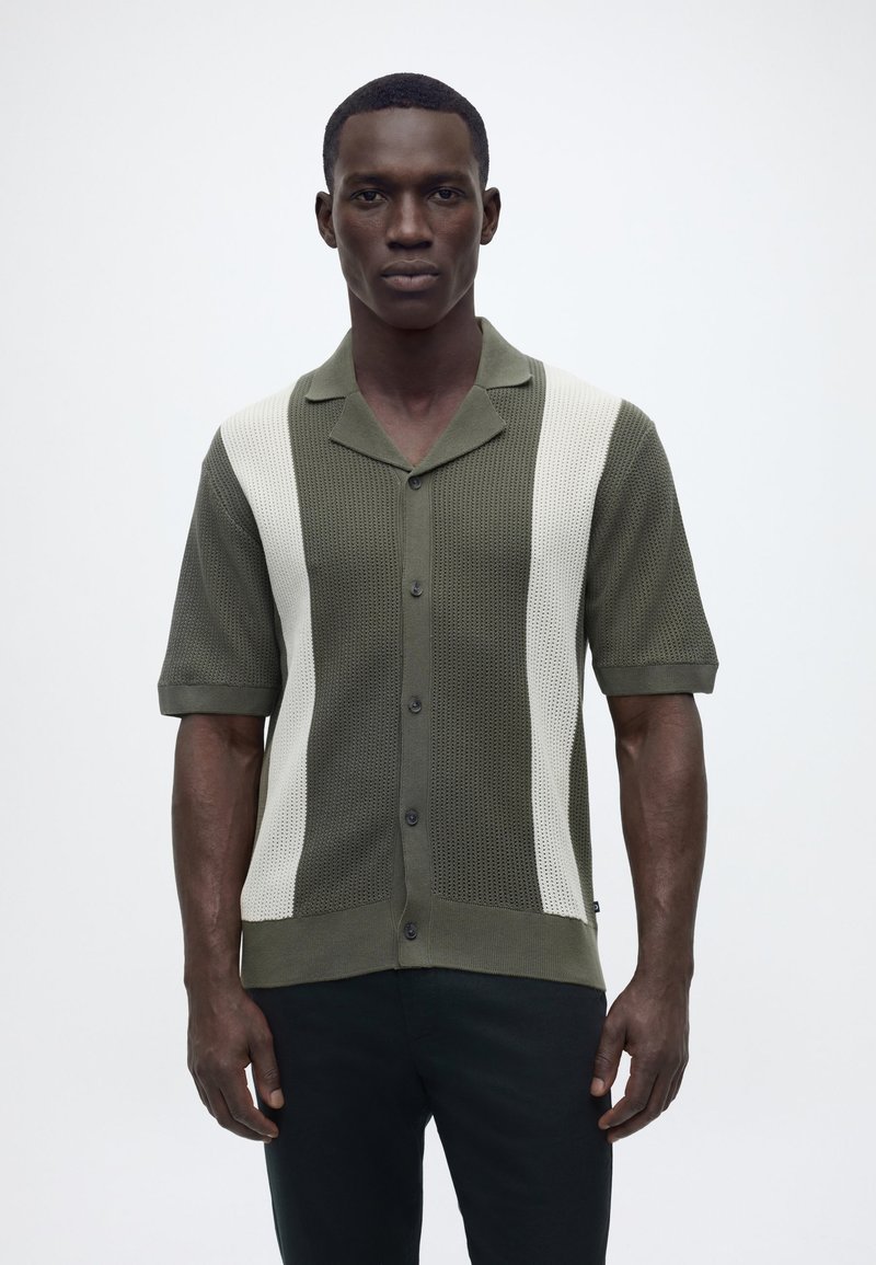 OPEN KNIT POLO - Πουκάμισο - faded green white colorblock
