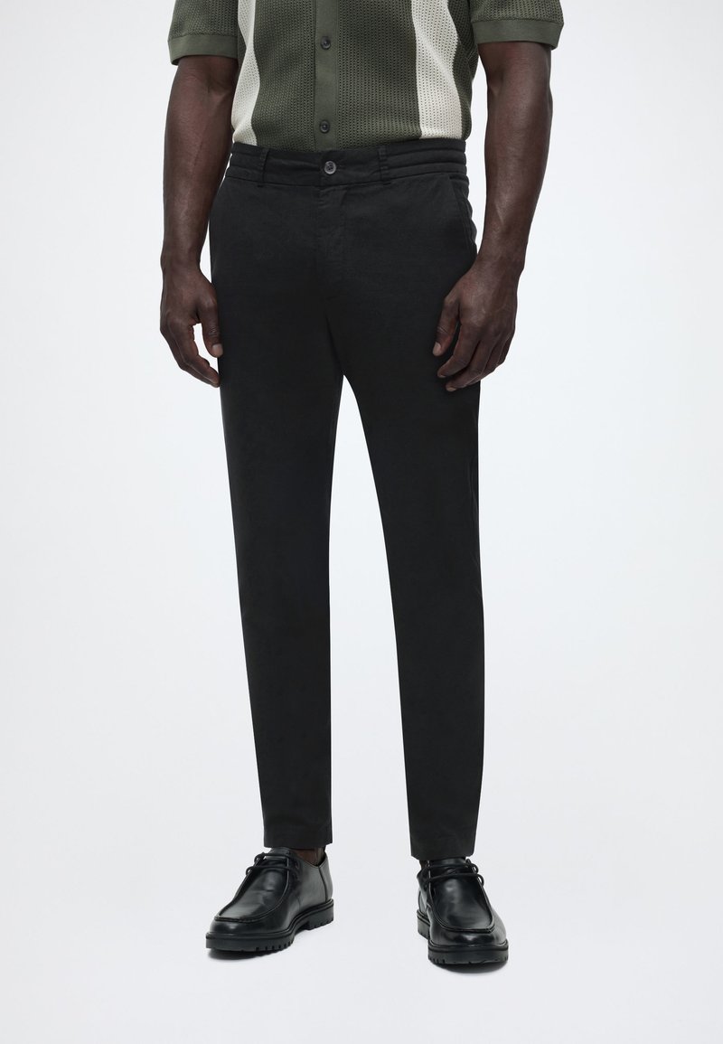 RELAXED TAPARED LINEN CHINO - Chinos - black