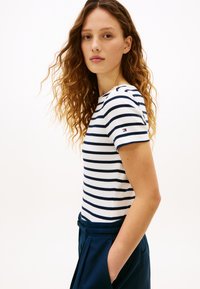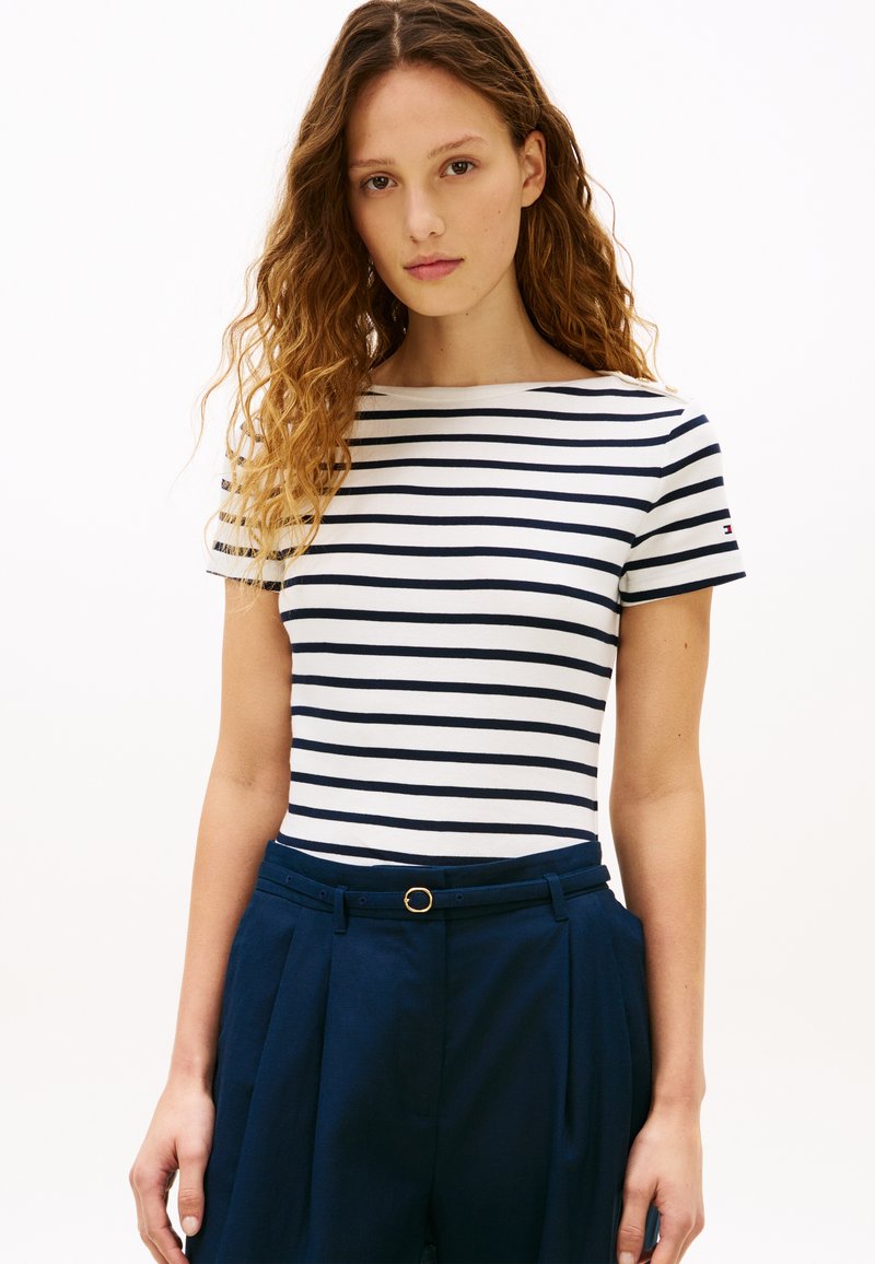 GOLD-TONE BUTTON SLIM BOAT NECK T-SHIRT - Μπλουζάκι με στάμπα - ecru/dark night navy