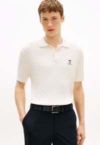REGULAR FIT EMBROIDERY CABLE KNIT POLO SHIRT - Πόλο - ivory petal