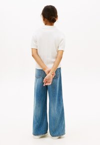 CROCHET OPEN PLACKET POLO TOP - Πόλο - ivory silk