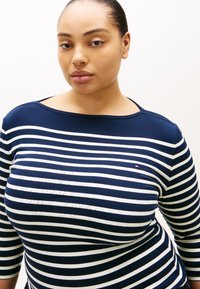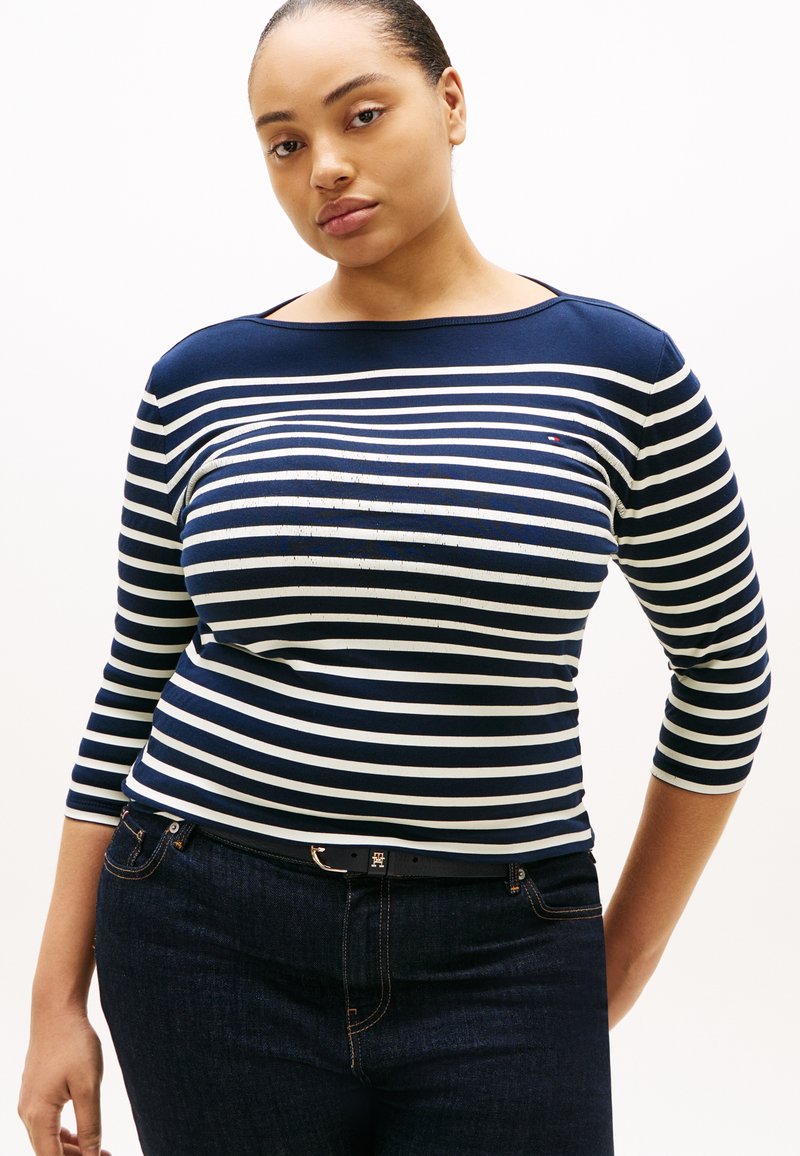 CURVE BOAT NECK THREE-QUARTER SLEEVE T-SHIRT - Μπλούζα με μακριά μανίκια - dark night navy/ecru