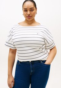 CURVE CAP SLEEVE RELAXED T-SHIRT - Μπλουζάκι με στάμπα - ecru/dark night navy