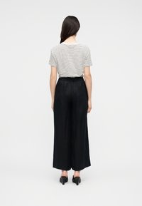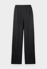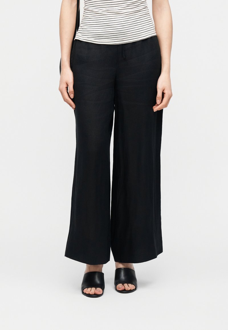 RELAXED WIDE LEG PURE LINEN TROUSERS - Παντελόνι - black