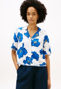 RELAXED FIT FRAYED LINEN BLEND SHIRT - Πουκαμίσα με κουμπιά - ivory/blue orbit