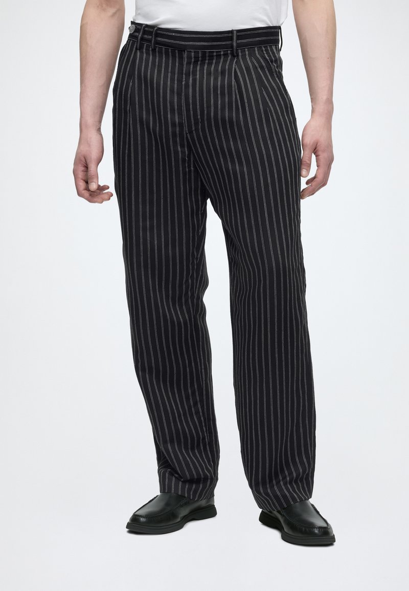 LINEN BLEND RELAXED TROUSERS - Παντελόνι - black/white