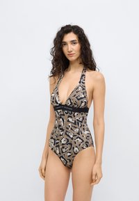 ORIGINAL PRINT REMOVABLE PADDING HALTERNECK SWIMSUIT - Μαγιό - nordic taupe