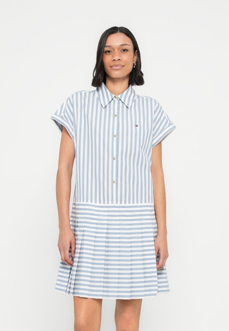 GOLD-TONE BUTTON RELAXED MINI SHIRT DRESS - Φόρεμα πουκάμισο - ecru/brisk blue