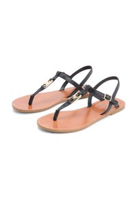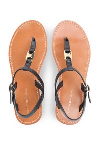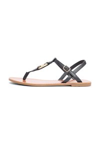 LEATHER TH MONOGRAM STRAP SANDALS - Σανδάλια τύπου T - black
