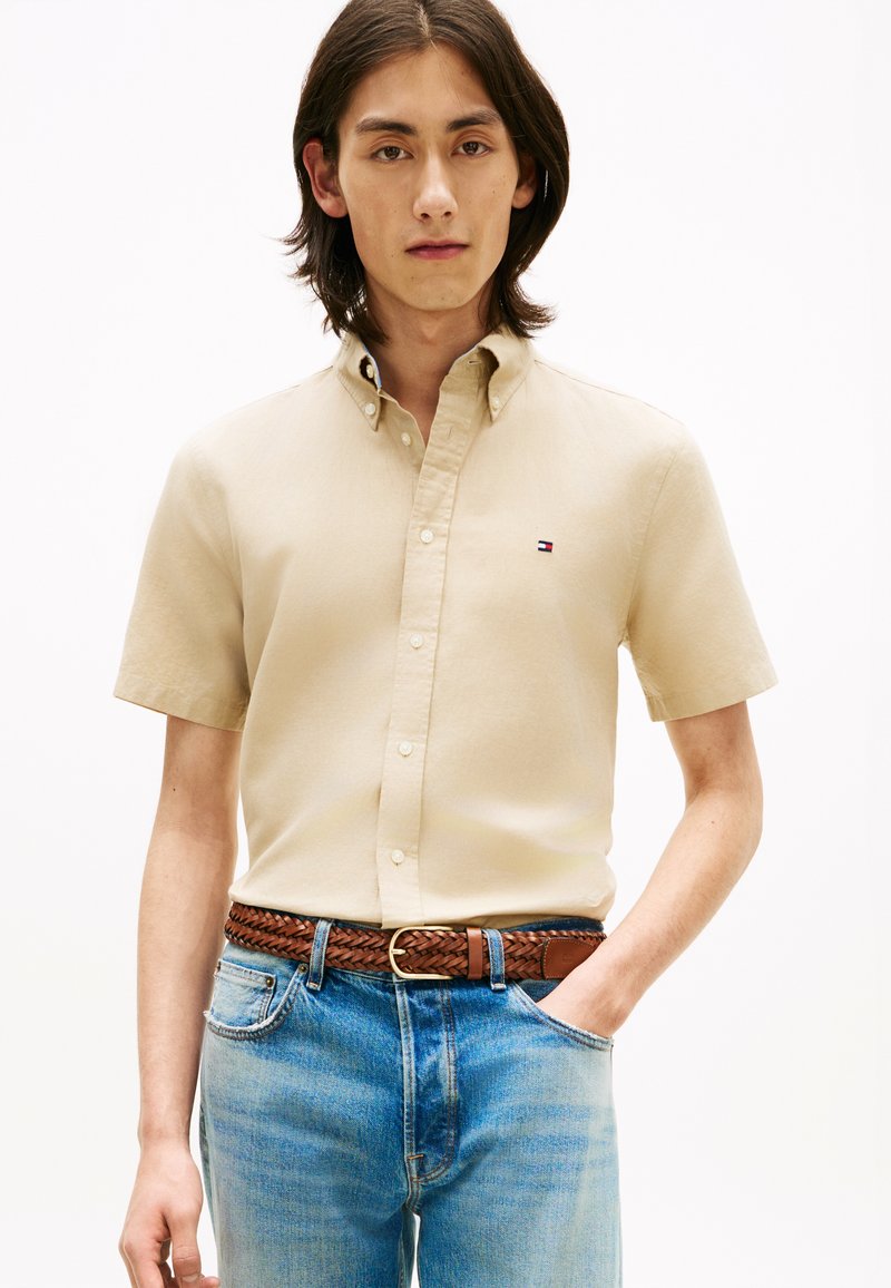 REGULAR FIT LINEN BLEND SHORT SLEEVE SHIRT - Πουκάμισο - sandalwood