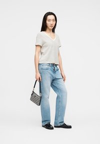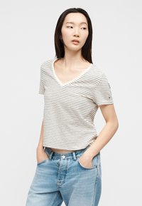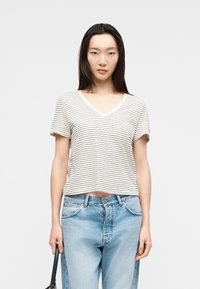 LINEN BLEND V-NECK T-SHIRT - Βασικό μπλουζάκι - calico/black