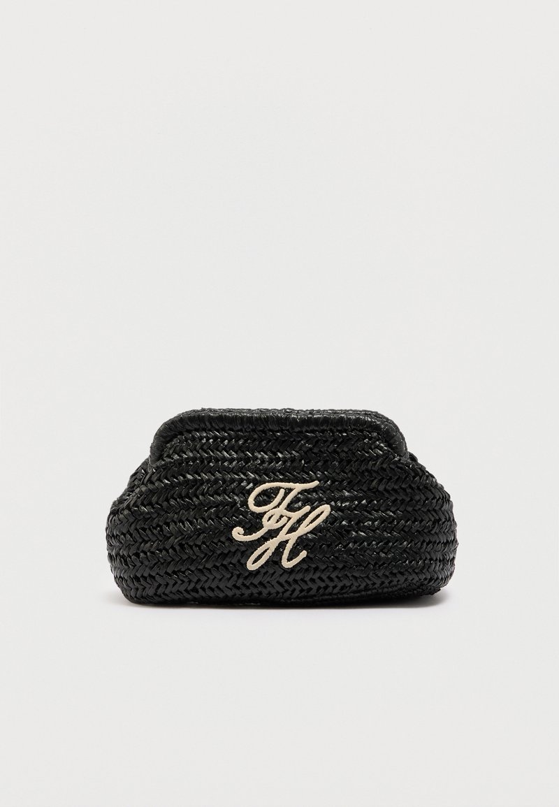 RAFFIA TEXTURED LOGO CLUTCH - Τσαντάκι - black