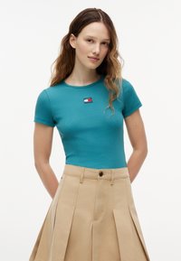 SLIM BADGE TEE - Βασικό μπλουζάκι - teal