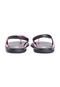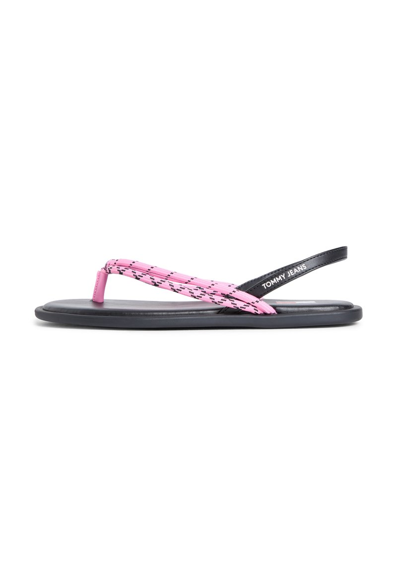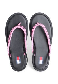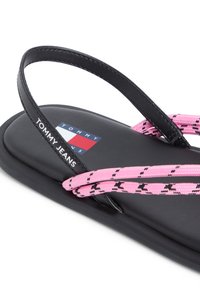 Μαύρο φλατ σανδάλι με ροζ λουράκι ποδόγυρου με σχέδιο και μαύρο λουράκι στη φτέρνα με την ετικέτα "Tommy Jeans".